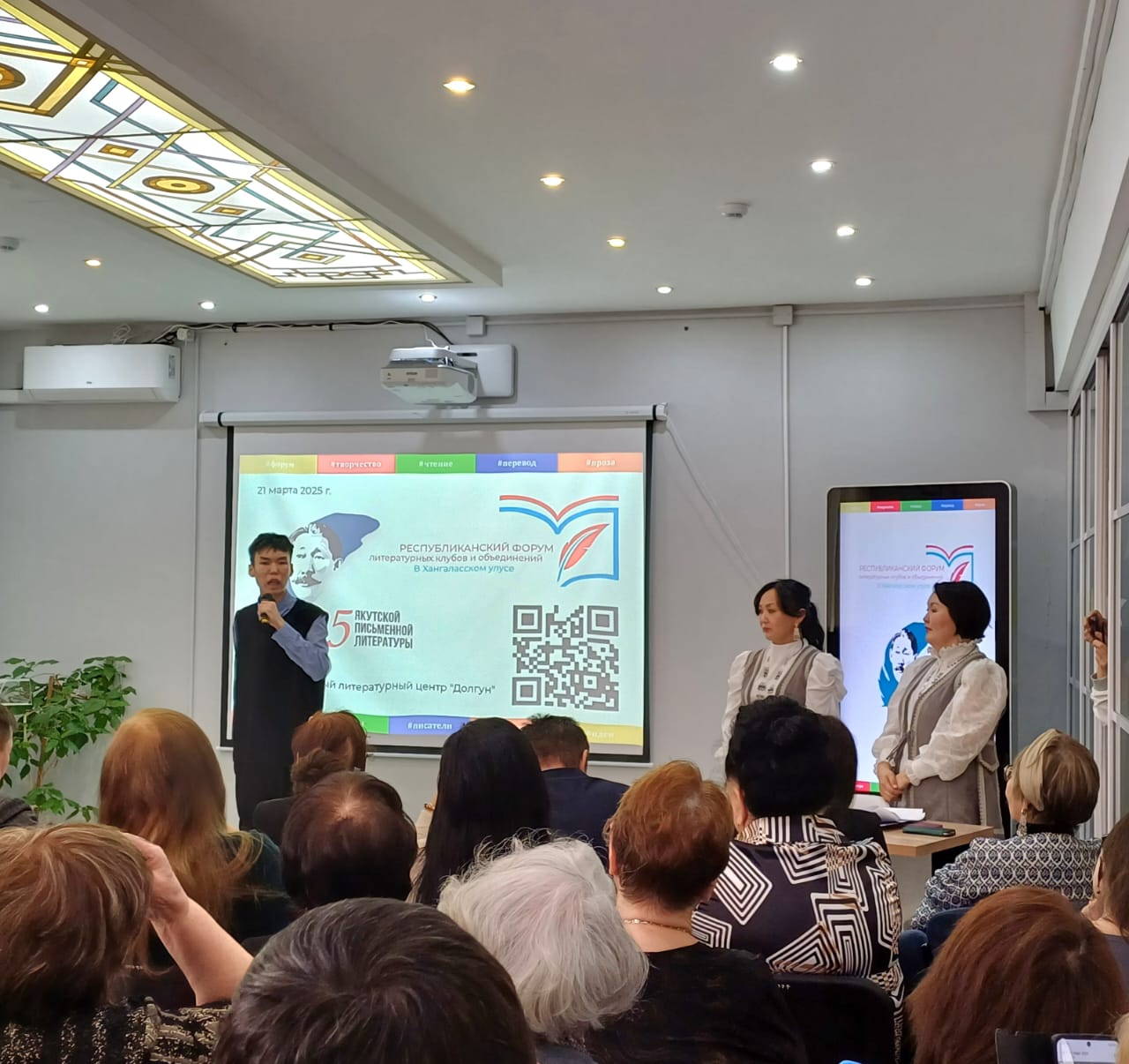 Свои стихи прочитал юный поэт Гаврил Адамов, ученик 11 кл. Покровской школы №1. Он – победитель заочного творческого конкурса СВФУ, посвященного 125-летию якутской литературы