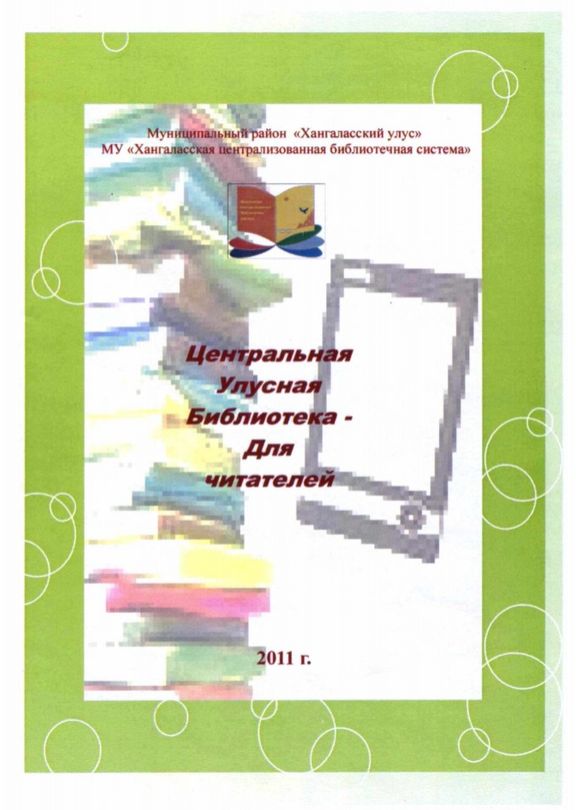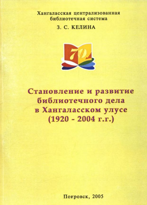 Келина, З. С. Становление и развитие библиотечного дела в Хангаласском улусе (1920-2004 гг.) / З. С. Келина ; [отв. ред. к.п.н. Г. Ф. Леверьева; Хангалас. централиз. библ. система]. – Покровск, 2005. – 56 с.