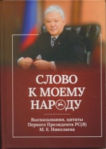 Слово моему народу : высказывания, цитаты первого Президента Респ. Саха (Якутия) / [сост. Л. Н.Колесова, М. Д. Семенова] – Якутск : Медиа-холдинг Якутия, 2017. – 104 с.