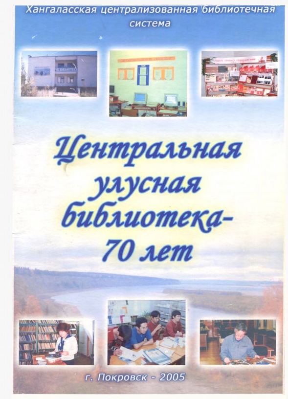 Центральная улусная библиотека – 70 лет : [метод. отдел Хангалас. централиз. библ. системы / сост. Г. Е. Ильина ; дизайн Е. А. Келин]. – Покровск, 2005. – 55 с.