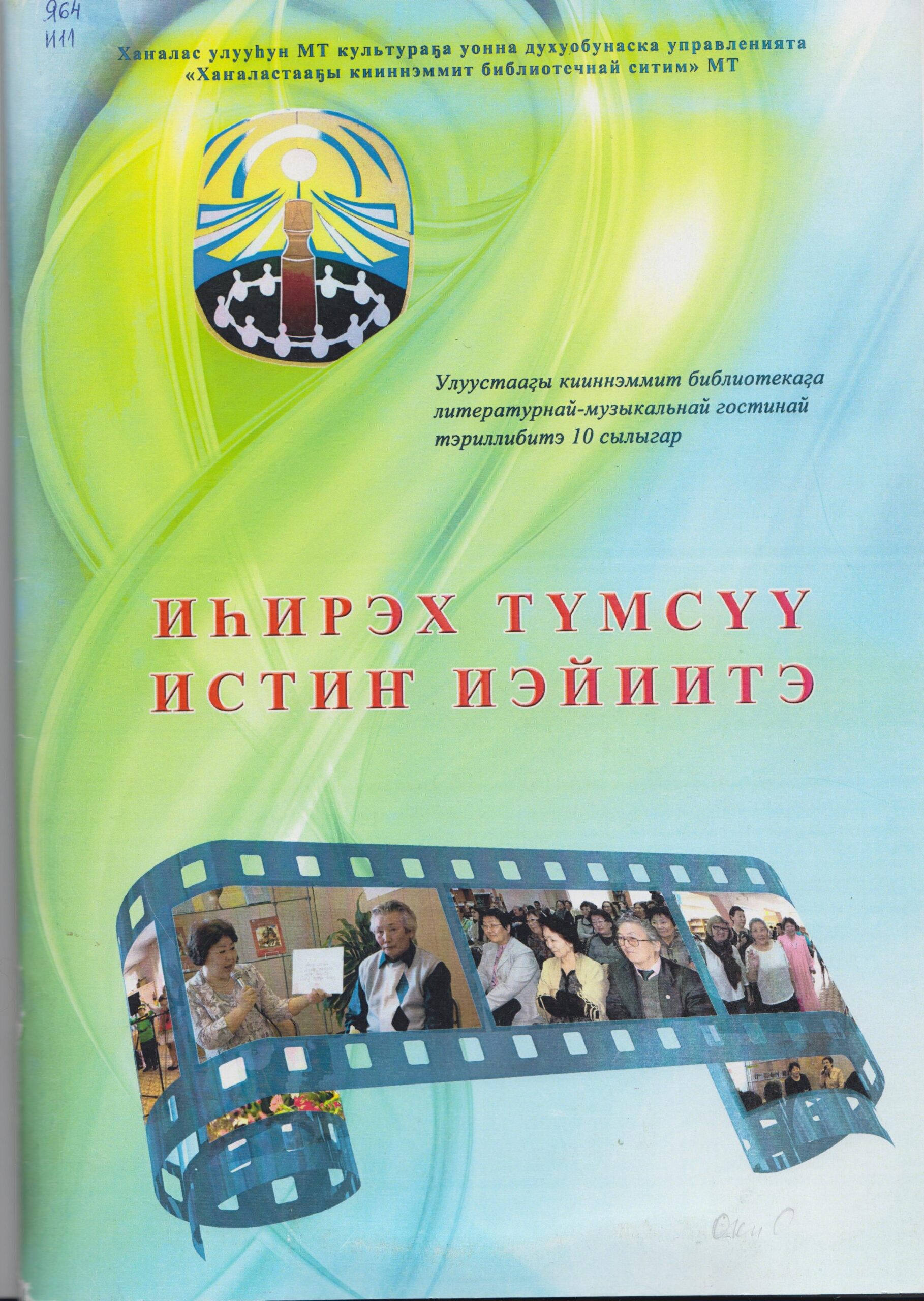 Иһирэх түмсүү истиҥ иэйиитэ : лит.-муз. гостинай 10 сылыгар улуустааҕы библиотекаҕа/ [хомуйан оҥордо Л. Н.. Колесова]. – Покровскай, 2014. – 52 с.