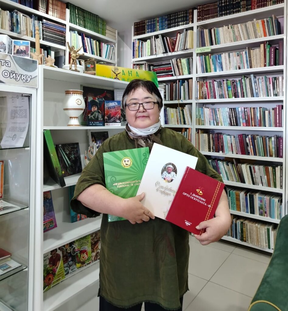 Библиотекабыт фондата хаҥаан иһэр. Улуустааҕы киин библиотекаҕа СР суруйааччыларын Сойууһун чилиэнэ, «Өлүөнэ долгуннара” литературнай түмсүү чилиэнэ Татьяна Михайловна Петрова – Мойуу Кыыһа хомуйан таһаарбыт  3 кинигэтин илии баттаан бэлэх уунна.