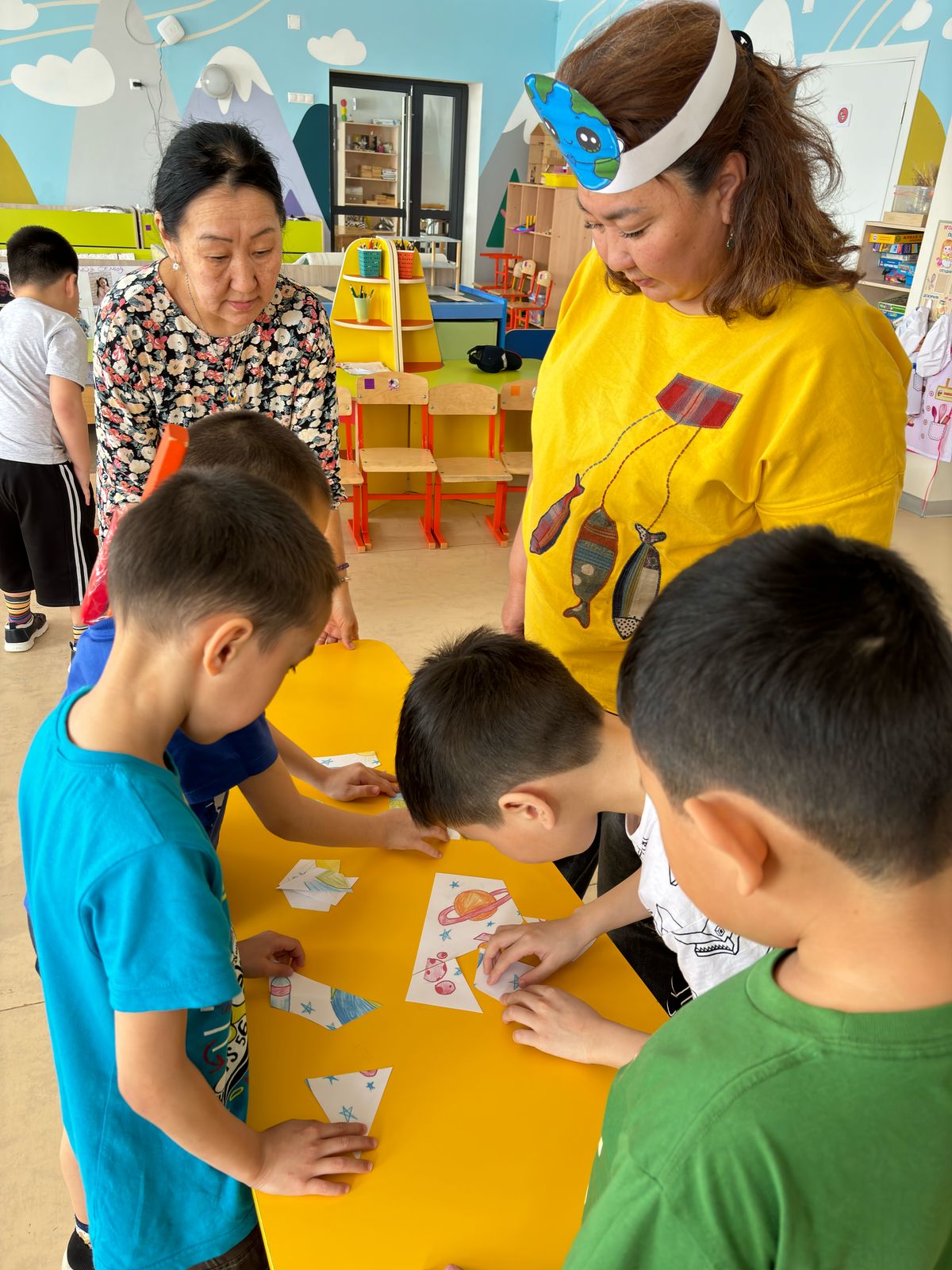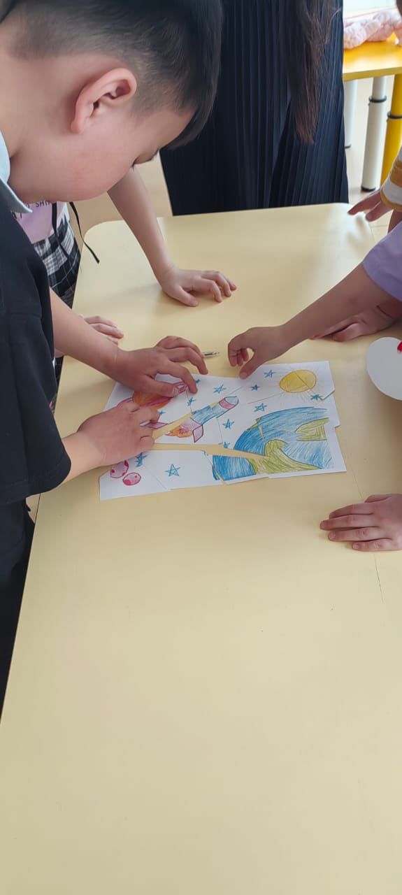 Затем дети с удовольствием приняли участие в «Космической эстафете» отвечали на вопросы викторины, где они показали свои знания о космосе, небесных телах и космонавтах. Затем отгадывали «Сказочный звездный кроссворд», собирали космические пазлы.