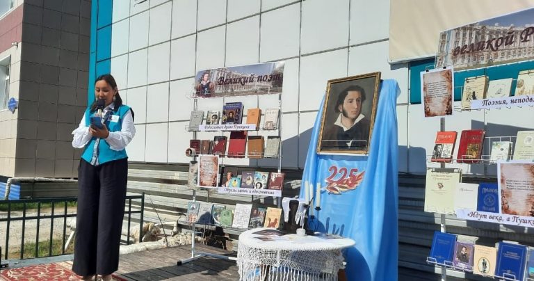 В честь юбилейной даты в сквере центральной улусной библиотеки прошел Литературный подиум. Юные читатели и старшее поколение друзей библиотеки декламировали свои любимые произведения. На сцене, украшенной портретом «Солнца русской поэзии», на фоне бессмертных книг ребята из театрального кружка Покровской СОШ№1, читатели Г.А.Шишигина, С.Н.Докторова, А.И.Ющенко, Л.Д.Константинова, а также сотрудники центра чтения во главе с директором МЦБС И.И.Адамова и гости библиотеки – участники республиканского форума методистов библиотек из Якутска, Алдана и Олекминска прочитали лирические произведения, знакомые всем поколениям .