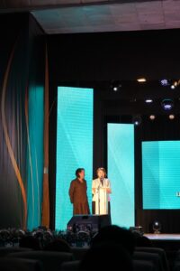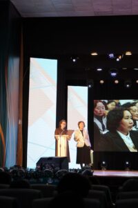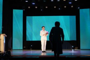 На сцене ветеранов библиотечного дела, внесших огромный вклад в развитие библиотечного дела района, поздравили молодые коллеги. От имени ветеранов выступила Павлова К.П.