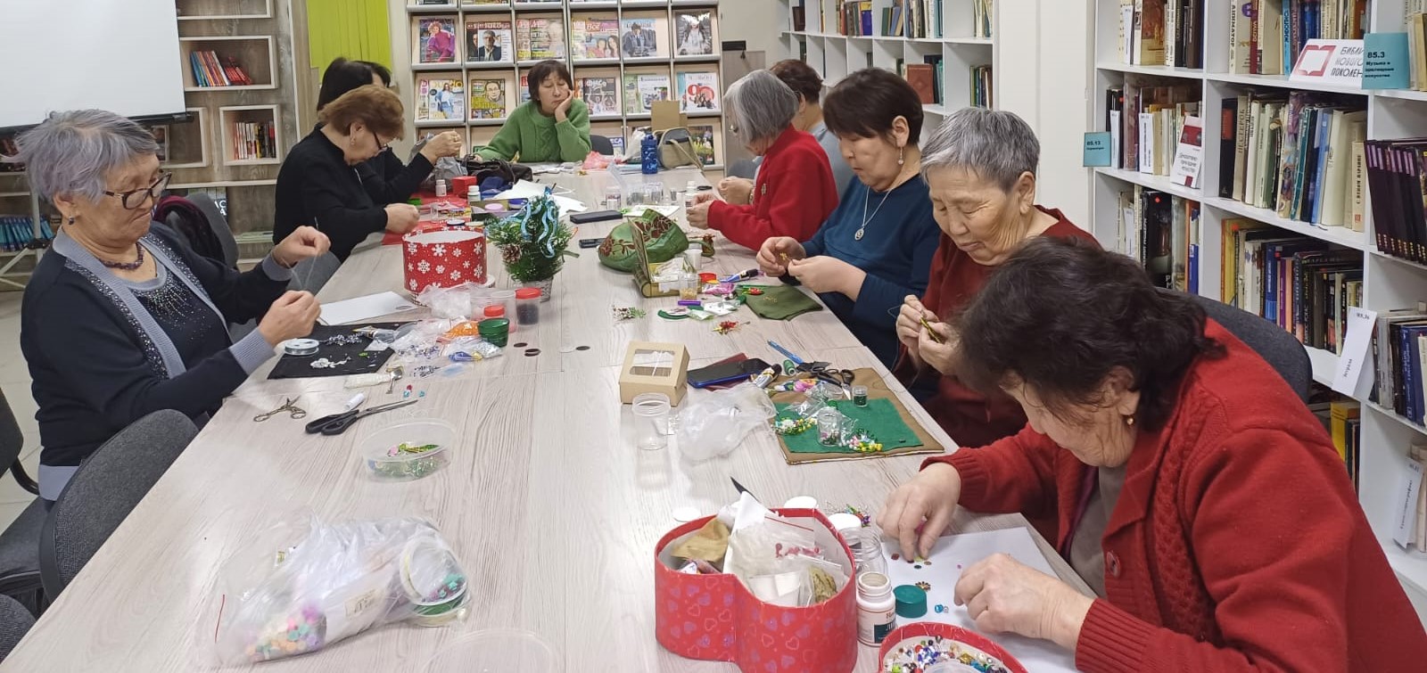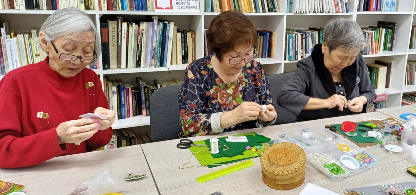 Творческое объединение “Бисерная мозаика” при улусной библиотеке работает с 2021 года. Занятия проводятся для любителей рукоделия всех возрастов. В течение года с членами объединения секретами создания оригинальной бижутерии – брошей, сережек, колье, а также украшений в национальном стиле делились работники библиотеки и приглашенные мастера. Свои работы объединение представило на Новогодней ярмарке-продаже в Центре культуры “Саргы түһүлгэтэ”. Это был первый опыт участия “Бисерной мозаики” в ярмарках мастеров и прошел он успешно.